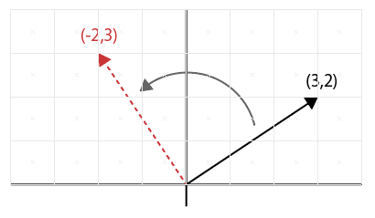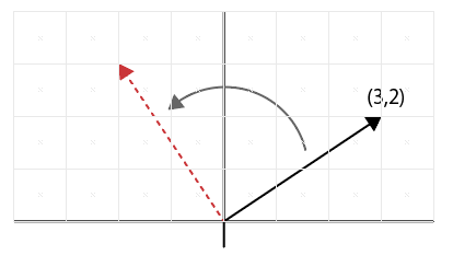 例)2次元の座標(3,2)を90度回転させるとします。