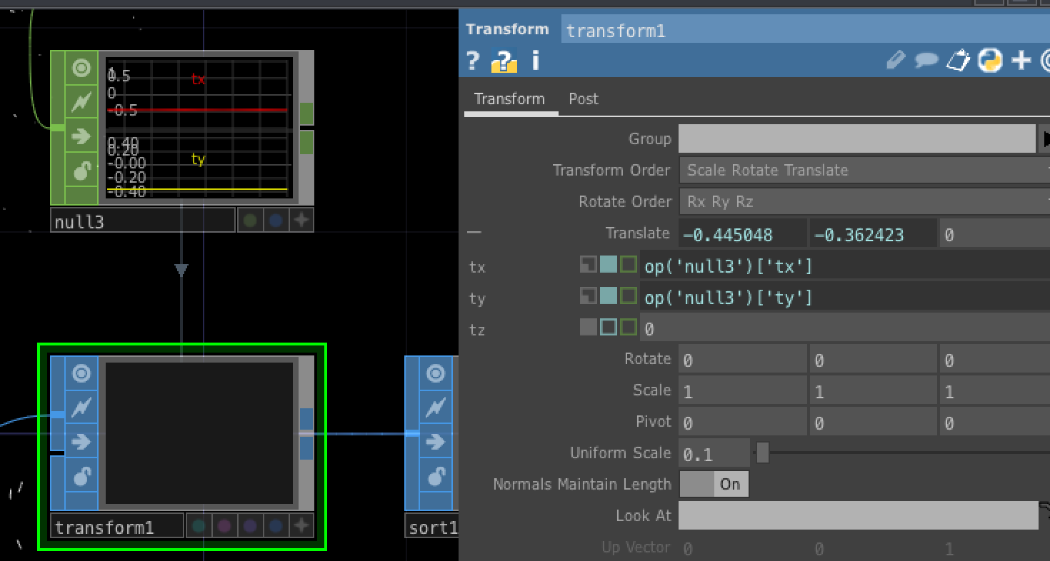 手順③で作成した値を利用してSphere SOPを移動させます。