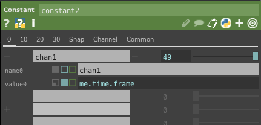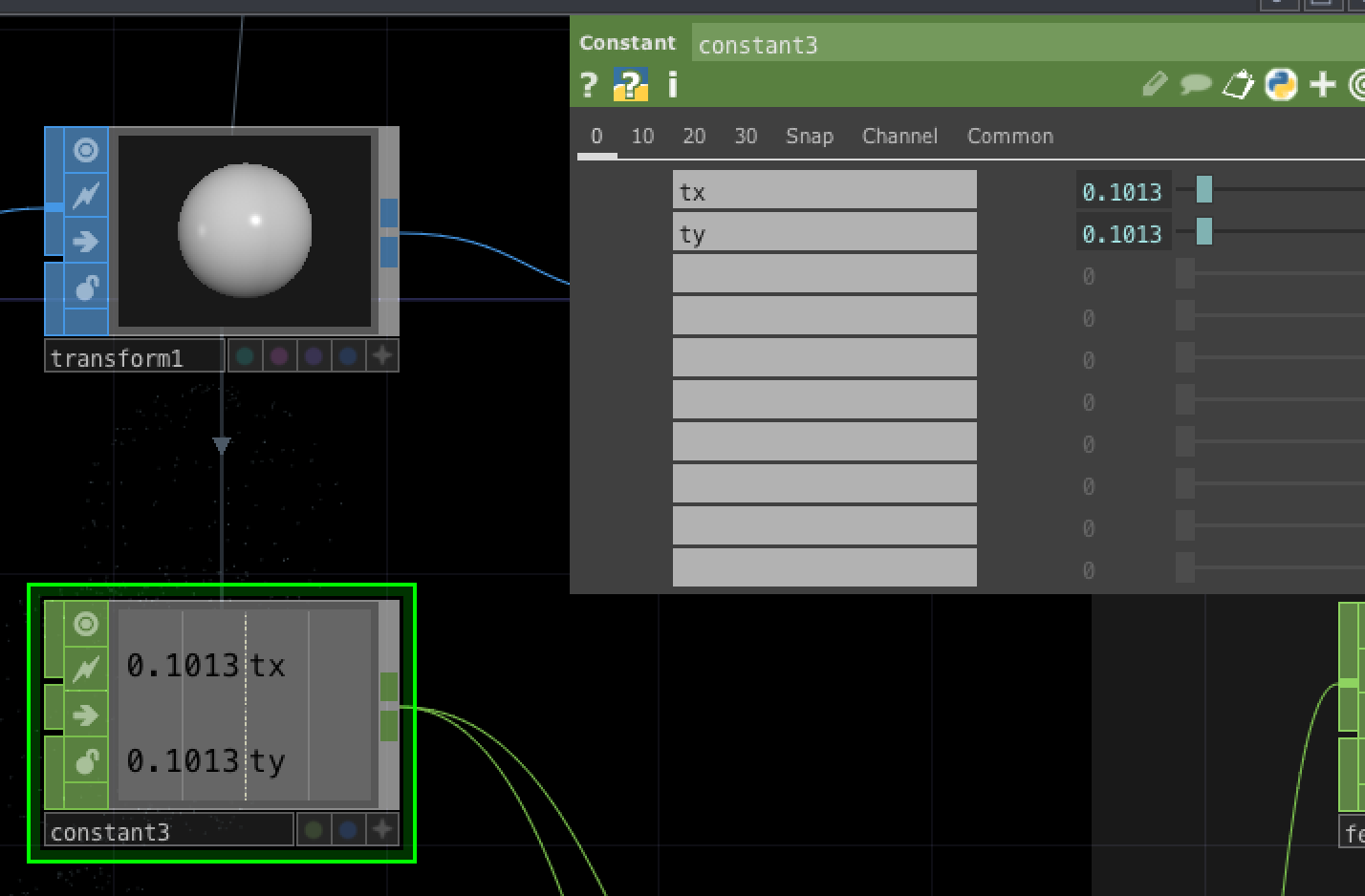 ①Sphere SOPの座標をConstant CHOPに入れます。
