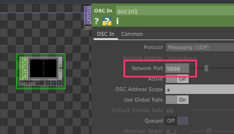 OSC In CHOPのNetwork protをZIG SIMの設定に合わせます。