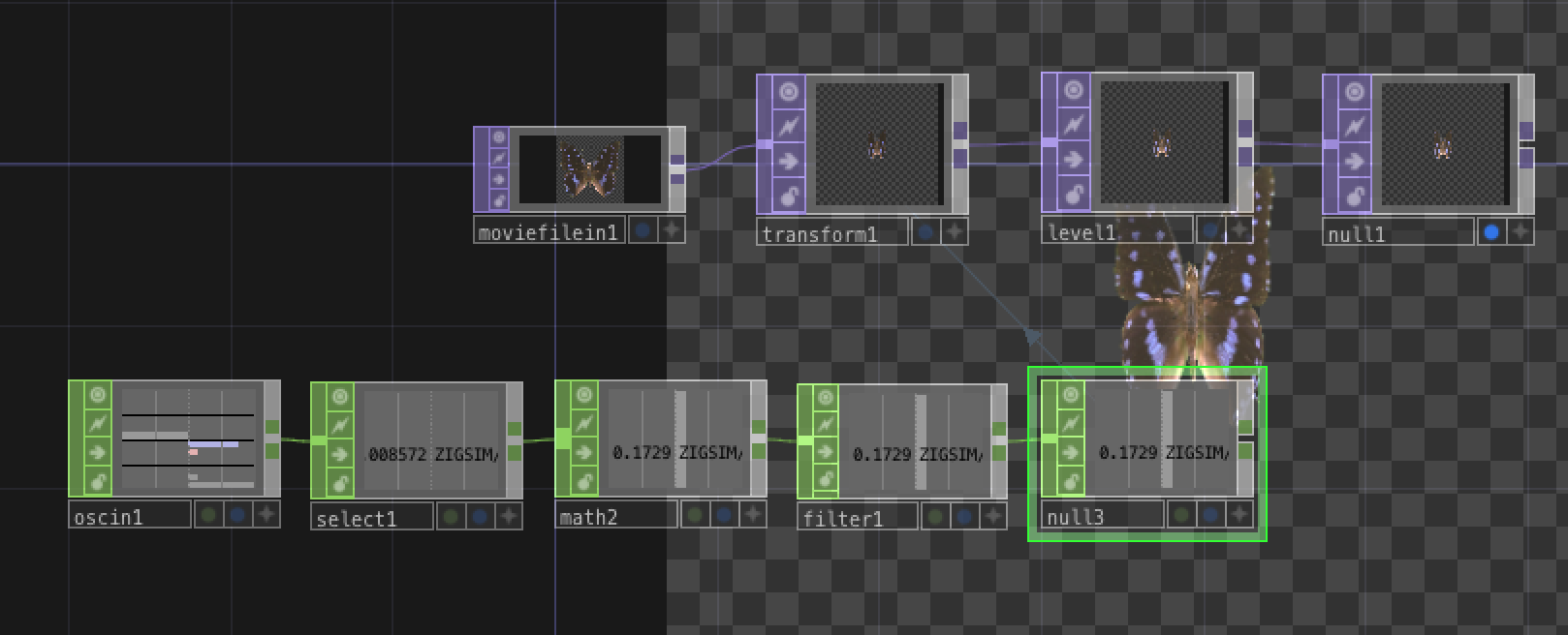 次に0SCで送りつけた値を使って蝶をパタパタさせたいと思います。