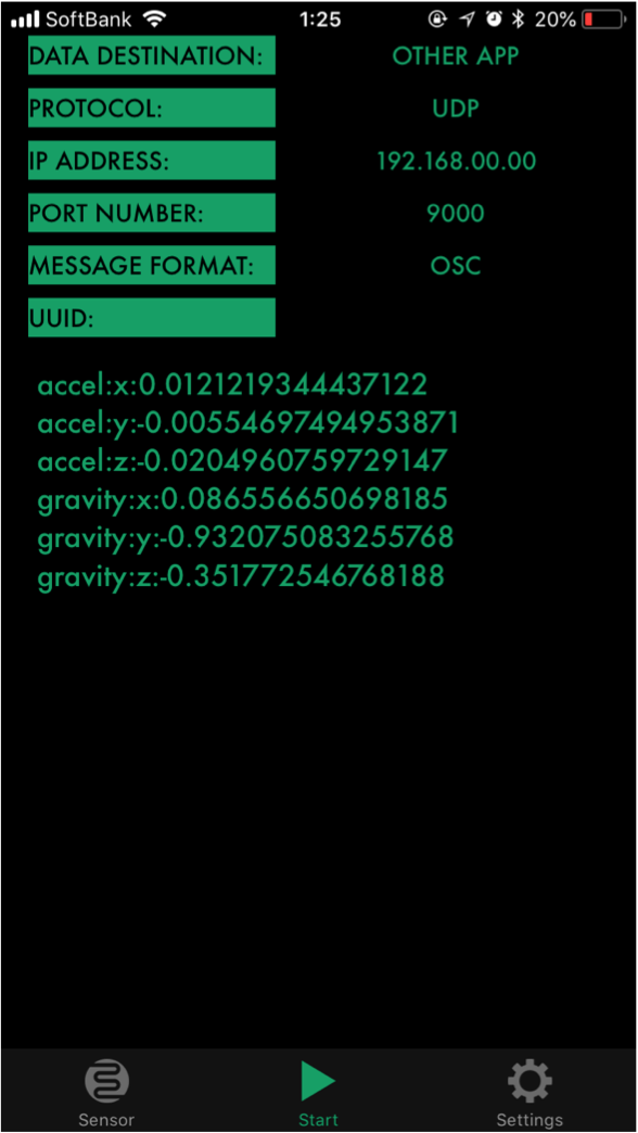 ナビゲーションのstartを押すと値が取得できるようになります。